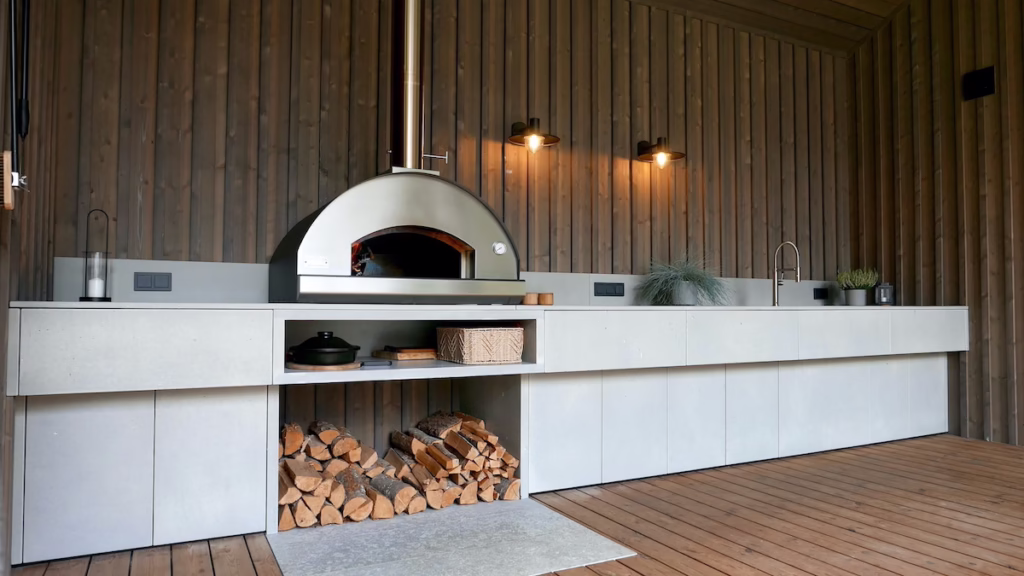 Utmärkt Underhållning: Ett utomhuskök skapar en social samlingsplats för familj och vänner att njuta av och den gemensamma upplevelsen av matlagning.